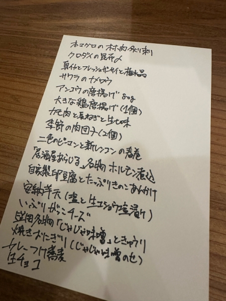 アラカルトの方は、一人お酒1杯、一品のご注文お願い致します。