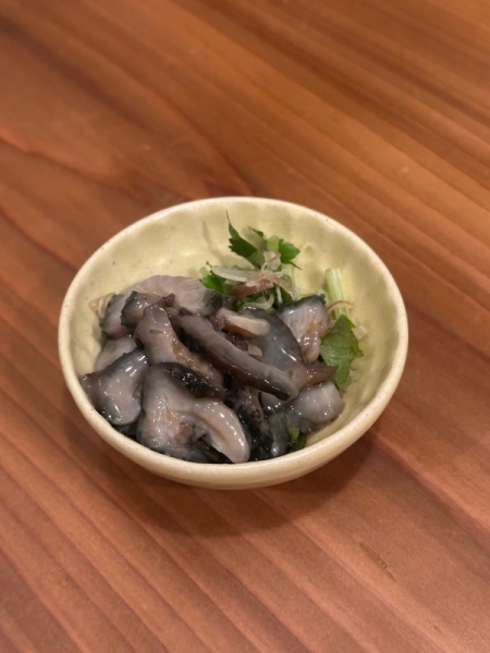ナマコ 2025-11-20 14:50:11 仙台 いろは横丁の居酒屋あらじるです。2025/11/20 17時オープン!本日はナマコ黒ナマコを使ったナマコ酢赤ナマコより硬いですが味が濃いのでなるべく薄切りにしてポン酢に漬け込んでます。寒くなってきたので熱燗やお湯割り焼酎と是非〜本日も御来店お待ちしております。080-9632-1404 居酒屋あらじる