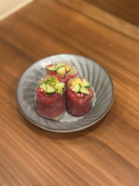 生春巻き 2026-02-12 15:05:57 仙台 いろは横丁の居酒屋あらじるです。2026/2/12 17時スタート本日は生春巻き本鮪の中落ち、沢庵、アボガド、きゅうりの入った生春巻きナンプラーを使ったタレで食べて頂きます。海苔を使わないトロタク巻きなイメージお任せメニューにも入ってますよ〜前回写真を撮り忘れたレバニラ玉もオススメです。本日も御来店お待ちしております。080-9632-1404 居酒屋あらじる