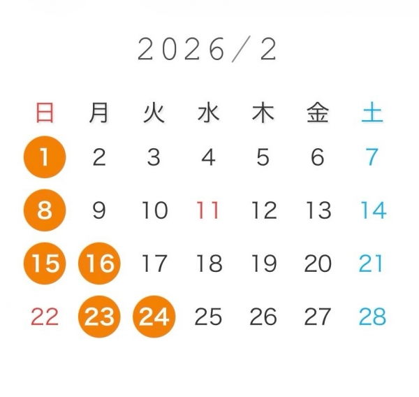 仙台 いろは横丁の居酒屋あらじるです。2026/2月の定休日のおしらせオレンジ色の丸がお休みとなります。...